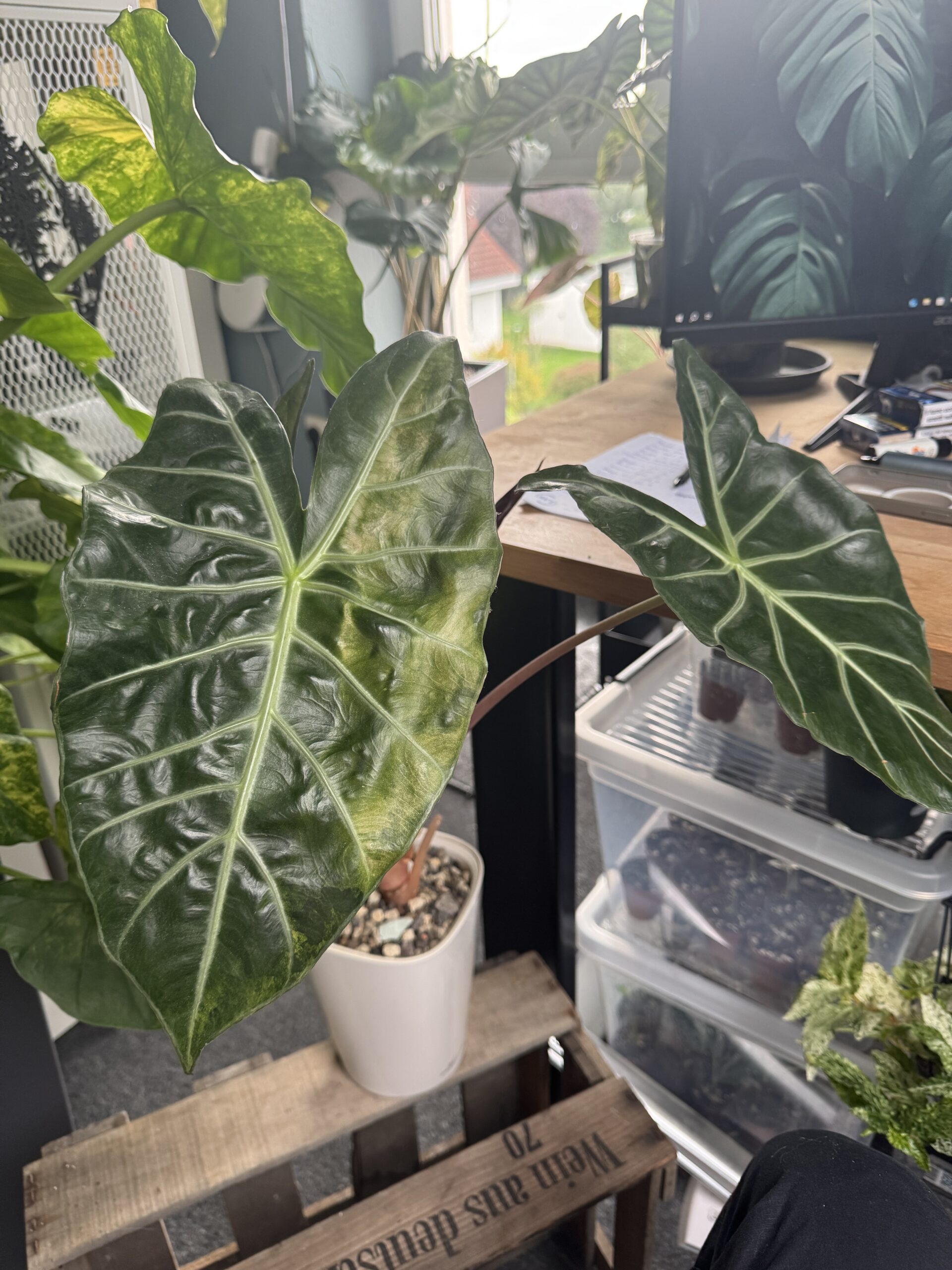 Verkauft wird hier diese Wunderschöne Alocasia Aurora Variegata, sie erhalten exakt die abgebildete Pflanze abweichungen möglich.